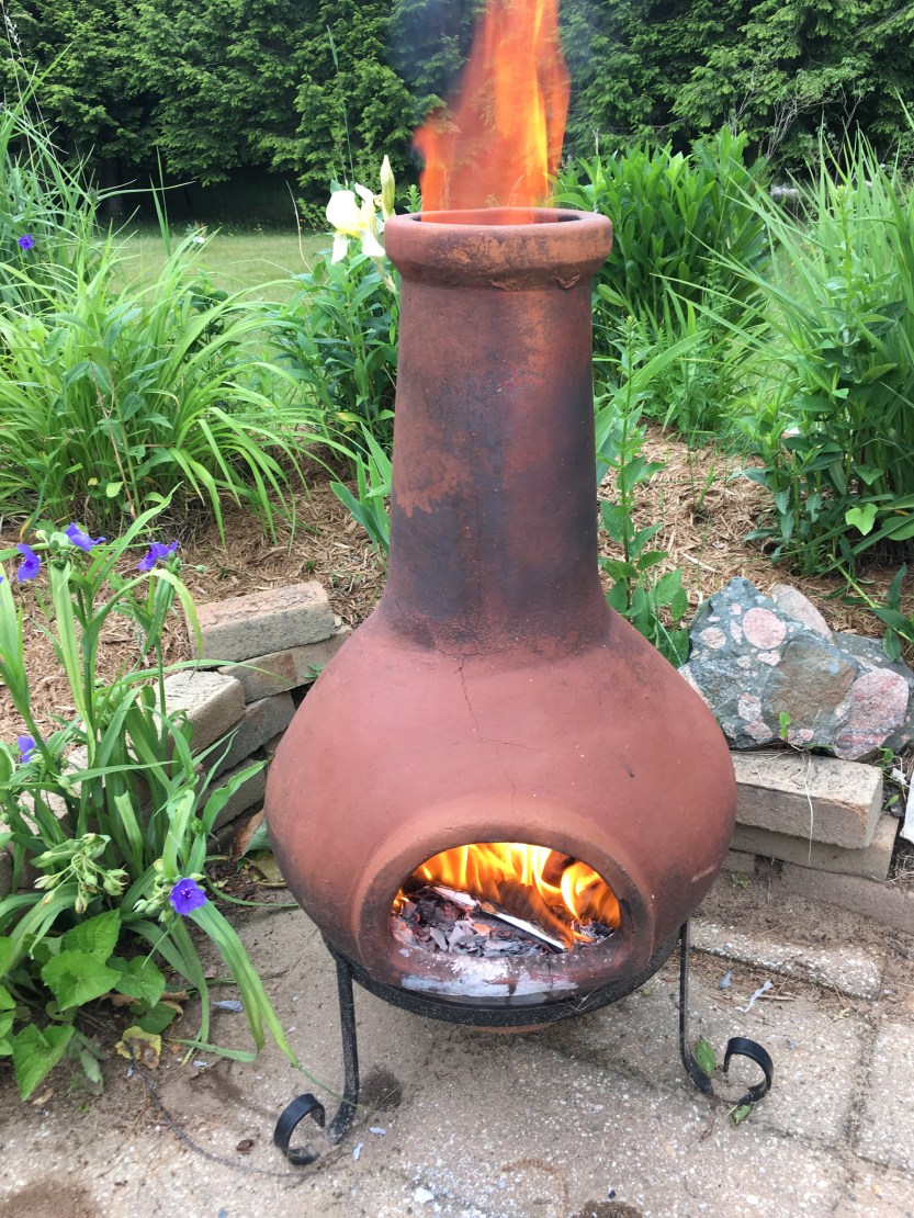 I have long been a fan of early morning fires in my little patio chimenaea. There’s something about it that beckons me from spring until the frosty autumn mornings feel too cool. I gather my yard harvests, pull weeds, listen to the birds, and stoke the fire. Today I decided that the fire needed some serious cleansing power and so I burned the pages of a journal that I use to write all the crap that I call proof of my failures. It was time to let that shit go. Send it up in flames and smoke into the air and be free. It was time for me to free myself of the idea that there’s any reason to believe I am unlovable. It wasn’t impulsive, I had been considering it each time I filled it with new words, new reasons. Today was the day. And I have zero regrets.